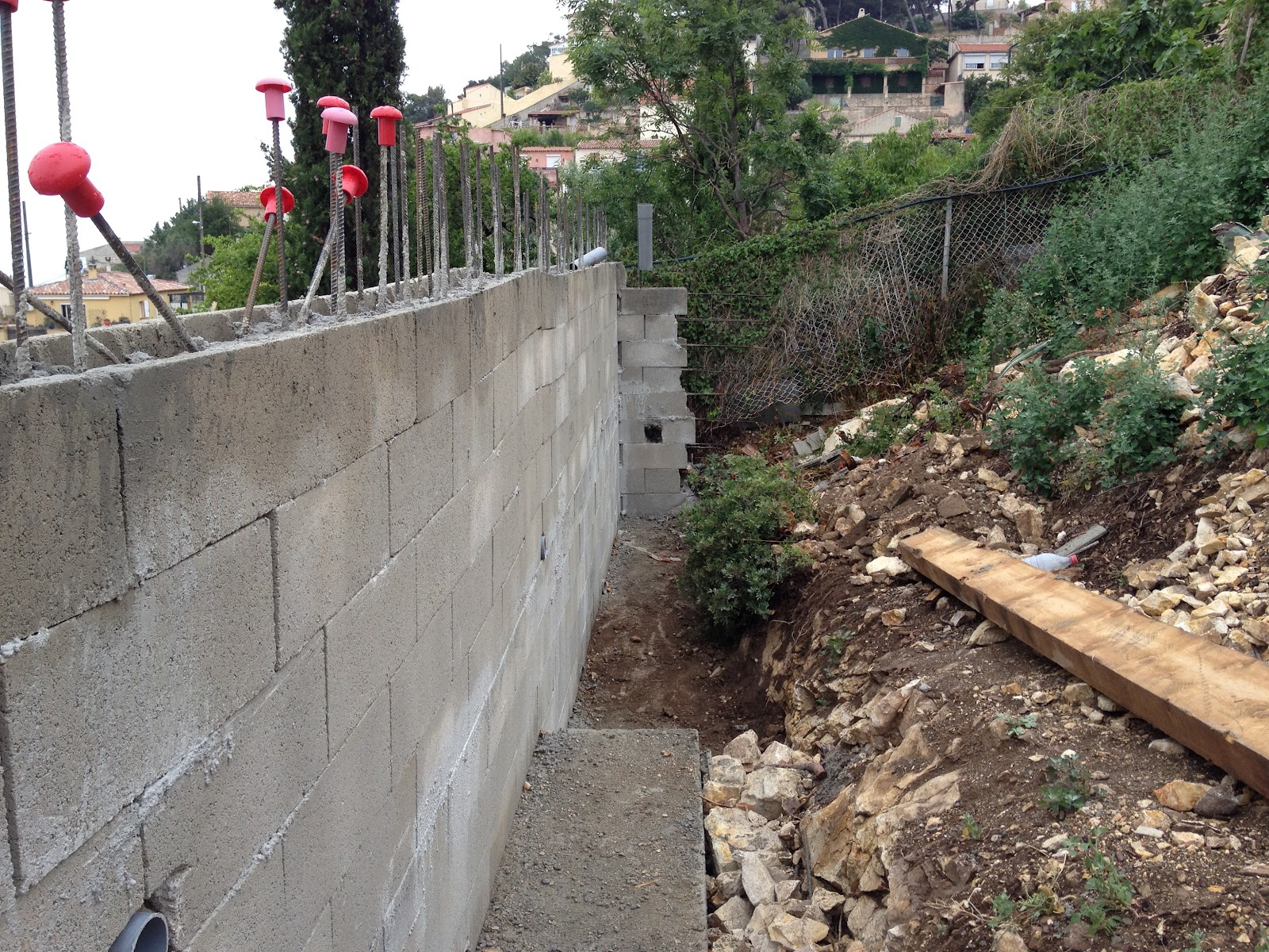 Réalisation d'un mur de soutènement en blocs a bancher.